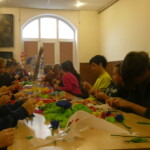 16 grudnia po raz kolejny Muzeum Ziemi Pałuckiej w Żninie zorganizowało w ramach cyklu Poznajemy folklor Pałuk spotkanie uczniów klasy VIII a Szkoły Podstawowej nr 1 w Żninie z Panią Zofią Gawron. Podczas tego spotkania młodzież wraz z wychowawcą Panem Marcinem Szarym wykonywała z krepy pałuckie kwiaty. Pani Zofia opowiedziała nie tylko o rodzajach kwiatów, ale także o roli jaką odgrywały w zdobieniu wnętrz. Należy też wspomnieć o tym ,iż przez wiele lat pracując jako nauczycielka w Szkole Podstawowej nr 1w Żninie zajmowała się upowszechnianiem kultury ludowej naszego regionu. Podczas zajęć z uczniami popularyzowała gwarę ludową, haft i pałuckie kwiaty. Jej uczniowie co roku brali udział i zdobywali czołowe nagrody w konkursach sztuki ludowej.